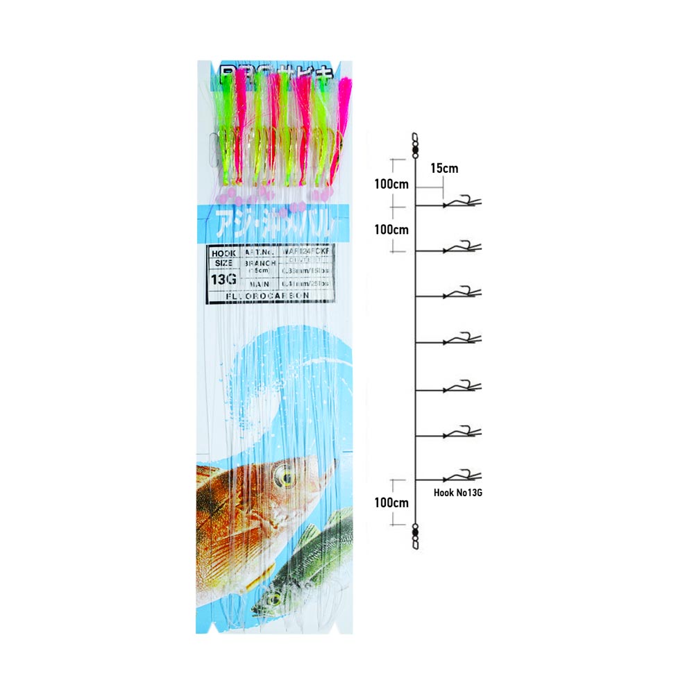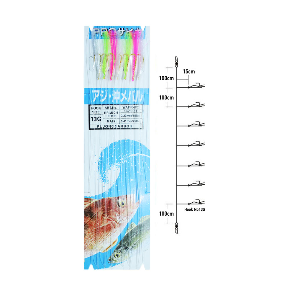 Το τσαπαρί WAF-704FC της Ιαπωνικής εταιρείας Yamashita είναι ένα εκπληκτικό τσαπαρί για όλα τα θηράματα. Το μοντέλο FC διαθέτει Fluorocarbon πετονιά Νο 0.33mm παράμαλλο και No 0.41mm μάνα. Τα αγκίστρια του είναι επενδυμένα με χρωματιστά φτερά και τρίχα φλας. Τα αγκίστρια του είναι No 13G χρυσά, διαθέτει 7 αγκίστρια με μήκος παράμαλλου 15cm, ενώ το κάθε παράμαλλο έχει μεταξύ τους απόσταση 100cm. Διαθέτει στριφτάρι με παραμάνα σε αρχή και τέλος.