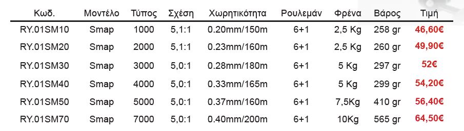 Αν οι ανάγκες σας είναι για έναν μηχανισμό αξιόπιστο αλλά και συνάμα δυνατό, τότε το Smap είναι η λύση και μάλιστα… σε πολύ εφικτή τιμή απόκτησης! Γραμμικά φρένα, τέλειο στρώσιμο του νήματος, ομαλή λειτουργία και αντοχή στα χτυπήματα, είναι μόνο μερικά από τα χαρακτηριστικά αυτού του μοντέλου. Με λίγα λόγια μιλάμε για ένα μηχανισμό που ανάλογα την τεχνική (LRF, Eging, Spinning κ.α.) μπορούμε να στοχεύσουμε με άνεση σε μεγάλα ψάρια χωρίς το φόβο να μας προδώσει ποτέ!