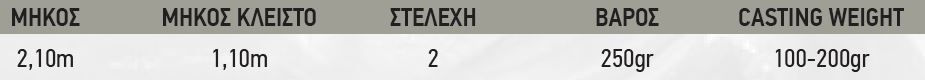 Ένα καθαρόαιμο καλάμι καθετής – συρτής αφρού, ενισχυμένο ώστε να αποδίδει τα μέγιστα στο ψάρεμα μας. Κατασκευασμένο από Composite Carbon, με Fiberglass κορυφή για να αντιλαμβάνεστε οποιαδήποτε πονηρή τσιμπιά και με δετούς οδηγούς SEA QUIDE που επιτρέπουν τη χρήση νήματος. Τέλειο για ψάρεμα με σιλικόνες, κοντοφύλακα, ζόκες λόγω της αντοχής του αλλά και του μήκους του.